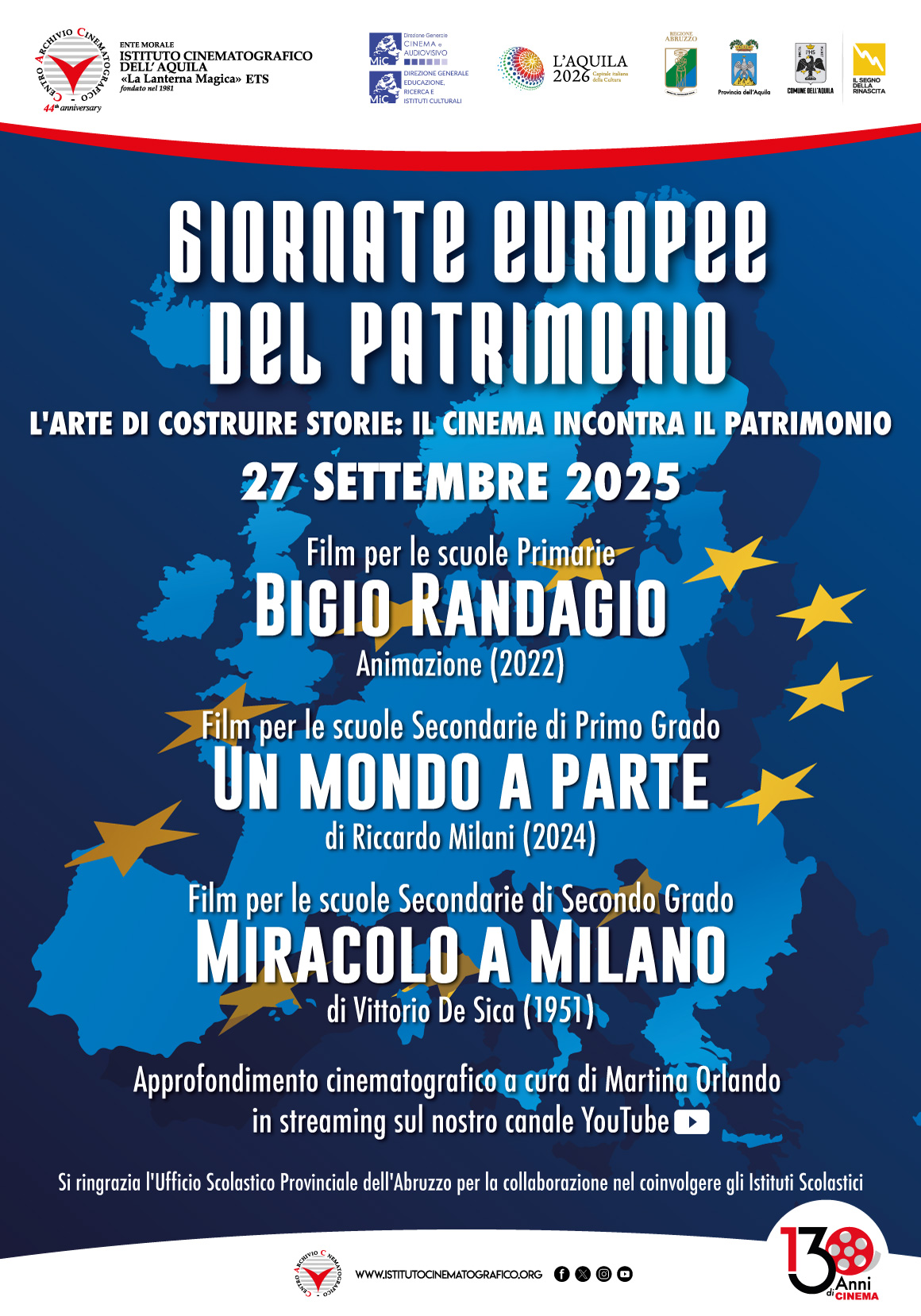 Istituto Cinematografico dell’Aquila – La lanterna Magica – “Giornate Europee del Patrimonio 2025 L’arte di costruire storie: il cinema incontra il patrimonio”