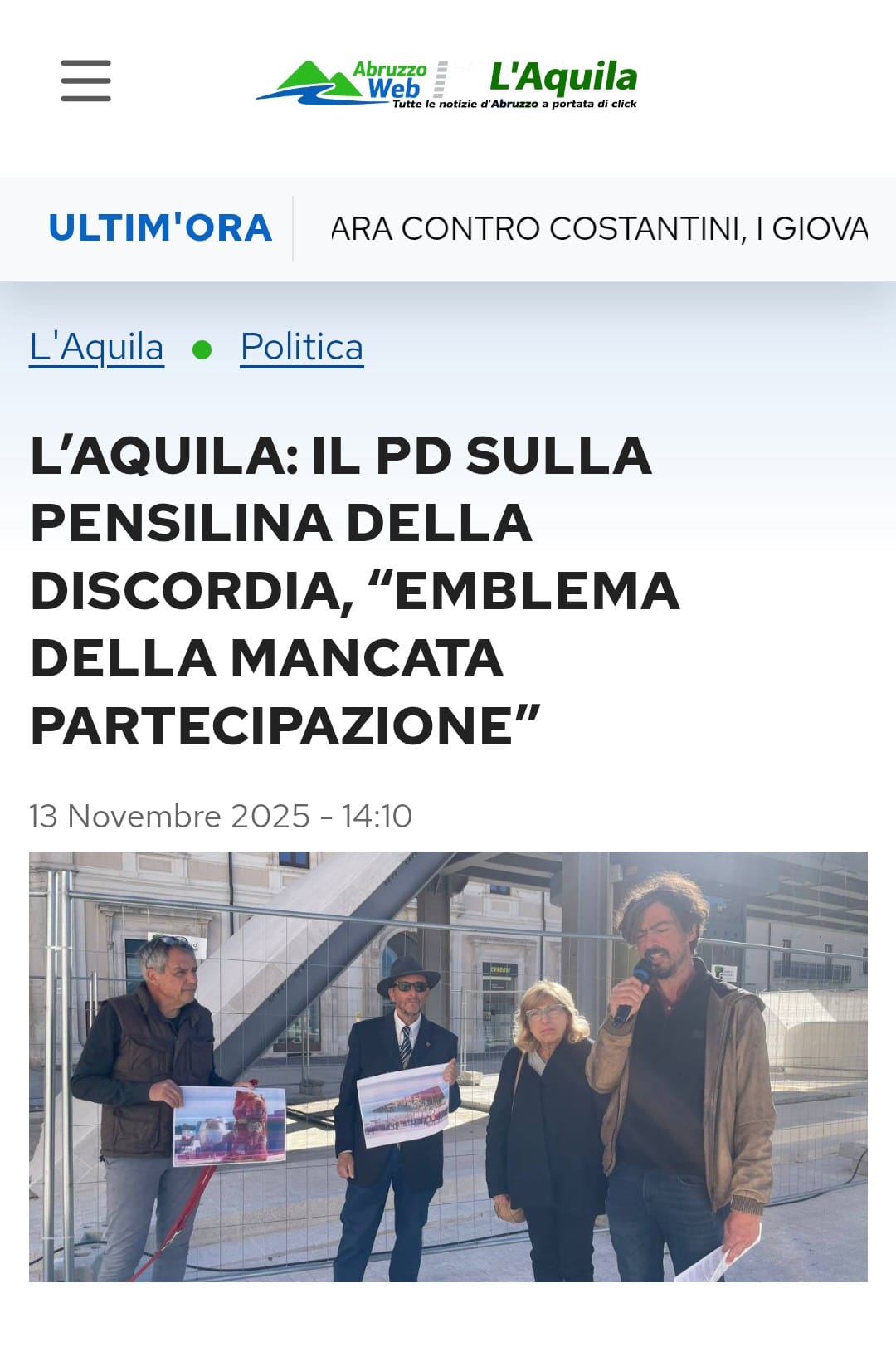Home - Rassegna stampa - L’AQUILA: IL PD SULLA PENSILINA DELLA DISCORDIA, “EMBLEMA DELLA MANCATA PARTECIPAZIONE”