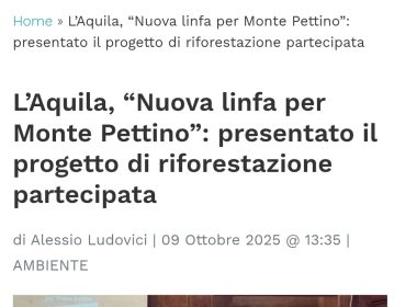 L’Aquila, il 9 ottobre la presentazione del progetto “Nuova linfa per Monte Pettino”
