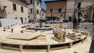 L’intervento temporaneo offrirà uno spazio inedito di incontro attorno alla fontana di Piazza Santa Maria Paganica, fungendo anche da piccolo palco per eventi del MAXXI L’Aquila e delle associazioni locali.